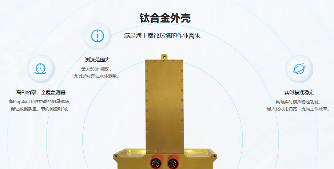 换能器一体化T型设计,外壳采用钛合金材料,单条带有效覆盖角度从30~140°在线可调,工作模式可选等角、等距模式,适应不同环境使用。